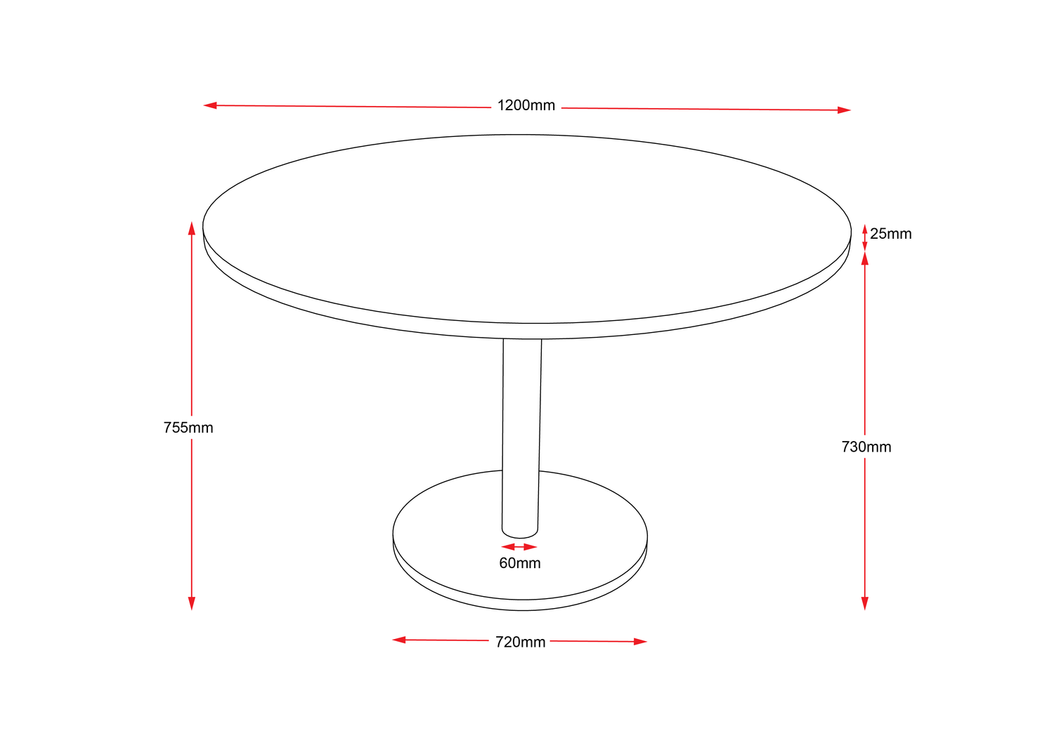 - Available in 900mm or 1200mm Diameter Tops x 755mm H Overall