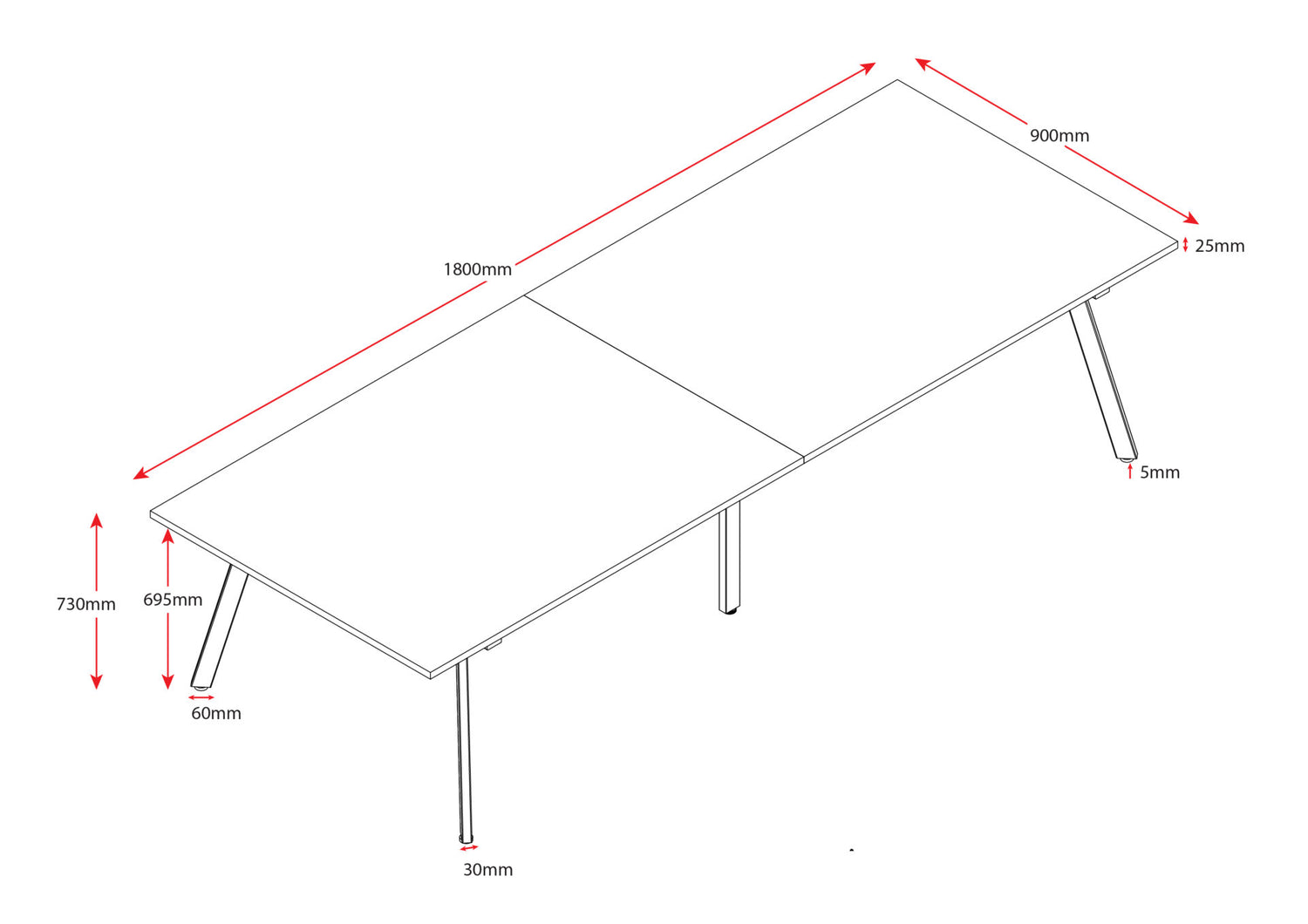 - 60mm x 30mm Splayed Leg Underframe