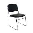 The Evo Visitor Chair is the perfect choice for visitor and reception areas, with a comfortable upholstered black fabric or PU back rest and seat pan, paired with a chrome sled base and button feet.
