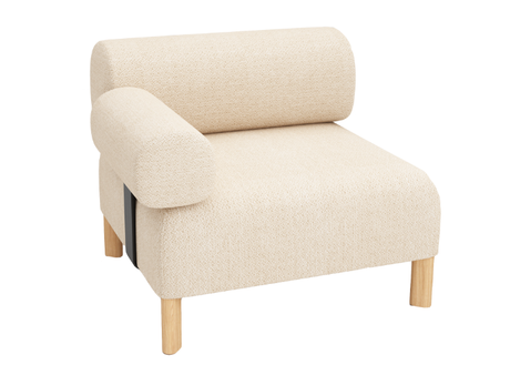 DD Cailloux Fabric Single Seater Breakout Sofa with 1 Armrest & 1 Side Table