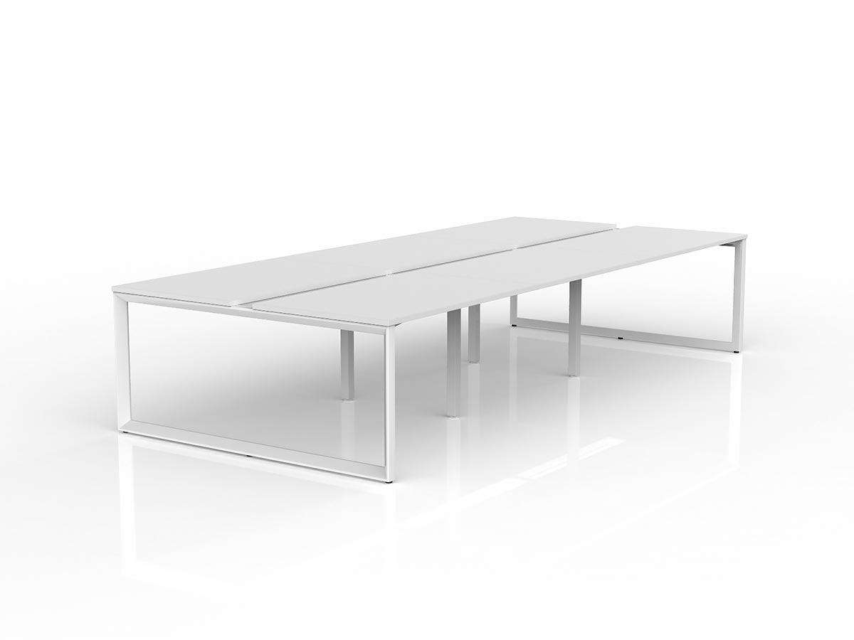 OL Anvil Loop Leg bench desking comes in both side by side and back to back configurations to fit any space. The Loop legs on the end are complemented by adjustable central legs, enabling excellent levelling ability even on the most uneven floor surfaces.