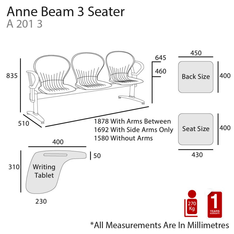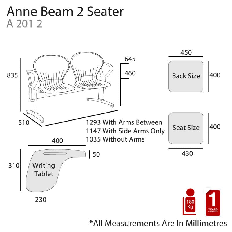 MA Anne Polypropylene Seat and Back Metal Frame Beam Seating
