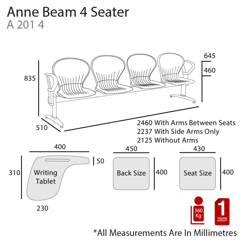 MA Anne Polypropylene Seat and Back Metal Frame Beam Seating - 4 Seater / Not Upholstered / Without Arms is backordered and will ship as soon as it is back in stock.
