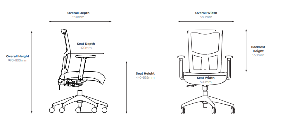 - High quality black mesh backrest – ergonomically supports your back