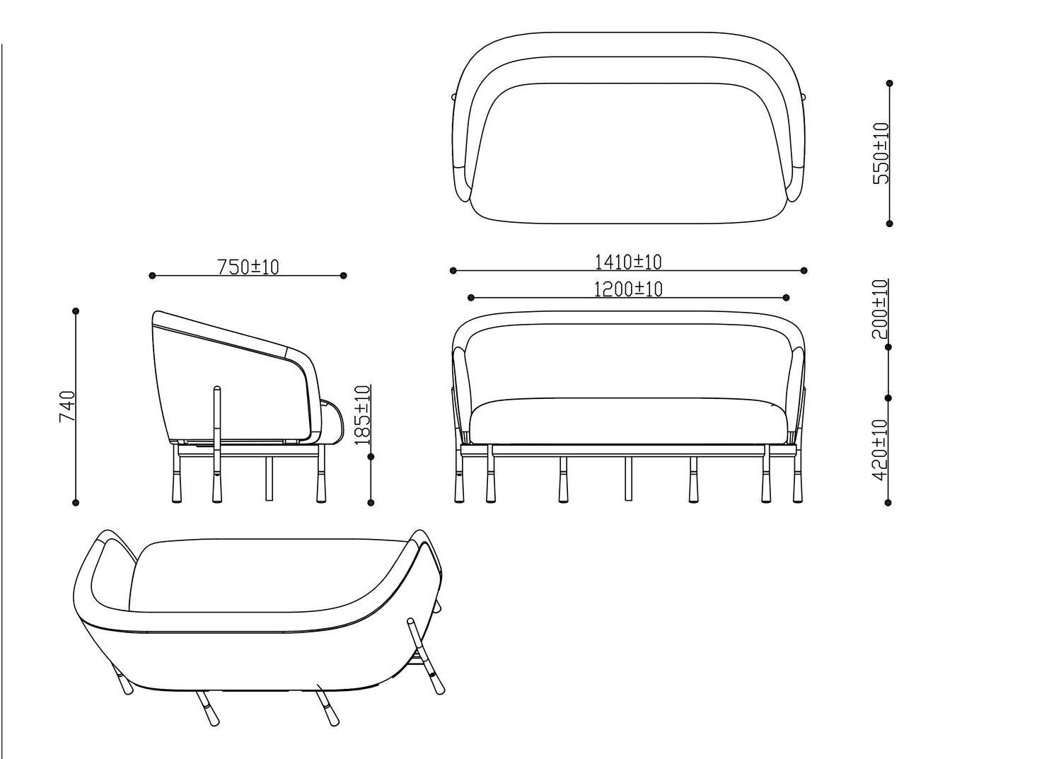 - Overall Dimension: 1410W x 750D x 740H mm