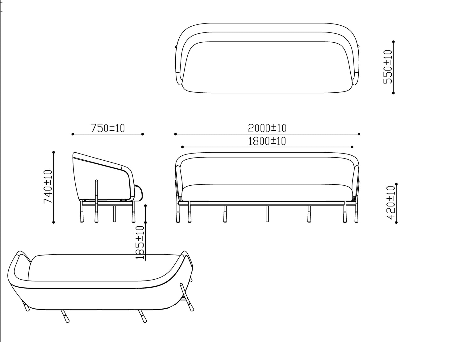 - Overall Dimension: 2000W x 750D x 740H mm