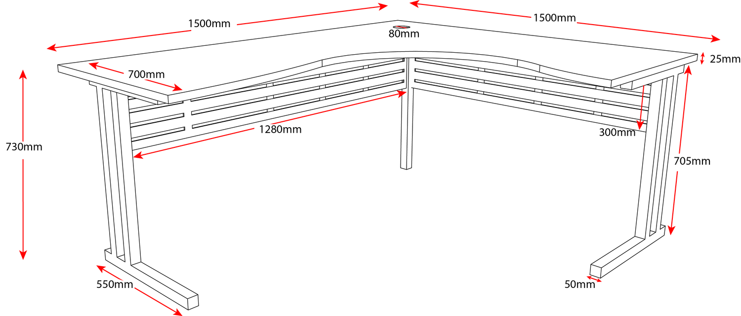 The Rapid Span C leg corner workstation has a heavy duty frame and adjustable feet. Easy access when running soft wiring cables between workstations.