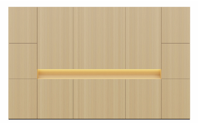 Barron presents a sophisticated storage solution for walls seeking a blend of functionality and aesthetic appeal. With the added feature of a garden display, this wall storage design elevates the ambiance of any commercial reception area.