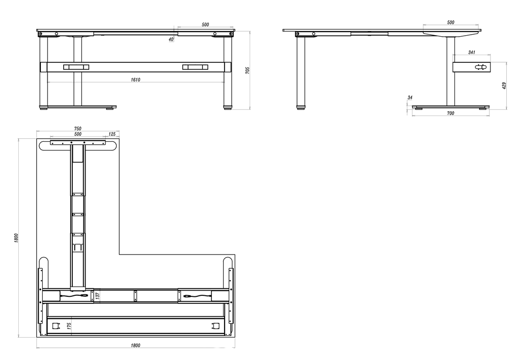 - Desk Mounting Top Plate Size: 500mm