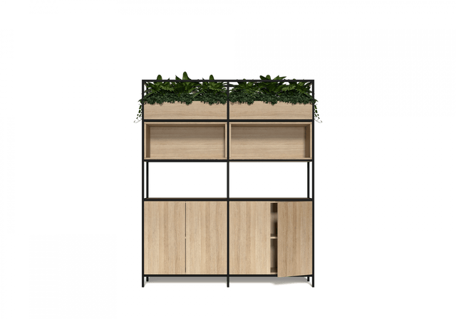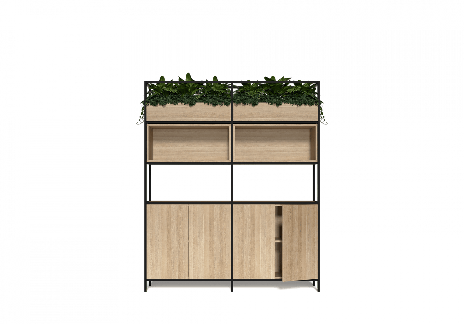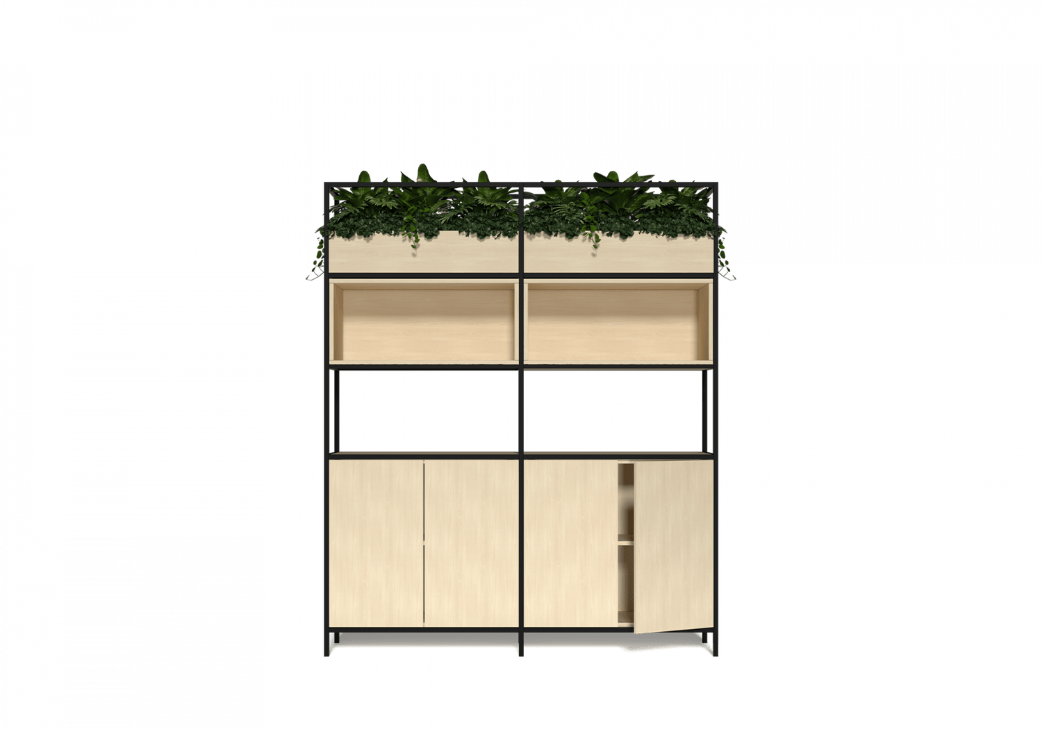 - 4 Hinged doors, 2 Open Shelves with 6 Planter box
