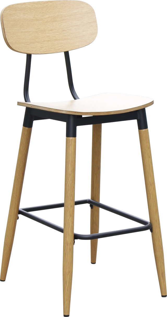 The Austin Barstool from Durafurn effortlessly blends contemporary style with commercial-grade durability, making it an ideal choice for the hospitality industry. Featuring a sturdy steel frame with a sleek wood finish, this barstool offers a modern look that fits seamlessly into any bar, café, or resort setting. Its ergonomic design, with a comfortable ply back and upholstered seat, ensures your customers can enjoy both style and comfort for hours, whether they're seated at a bar, high-top table, or counter.
