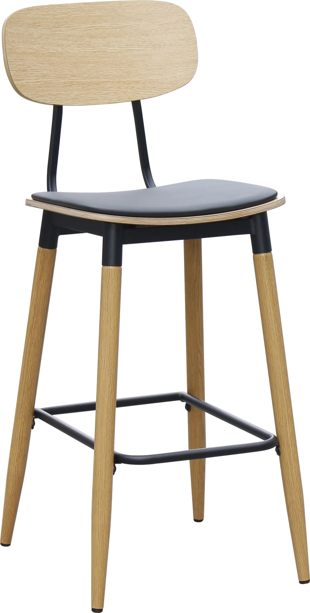 The Austin Barstool from Durafurn effortlessly blends contemporary style with commercial-grade durability, making it an ideal choice for the hospitality industry. Featuring a sturdy steel frame with a sleek wood finish, this barstool offers a modern look that fits seamlessly into any bar, café, or resort setting. Its ergonomic design, with a comfortable ply back and upholstered seat, ensures your customers can enjoy both style and comfort for hours, whether they're seated at a bar, high-top table, or counter.