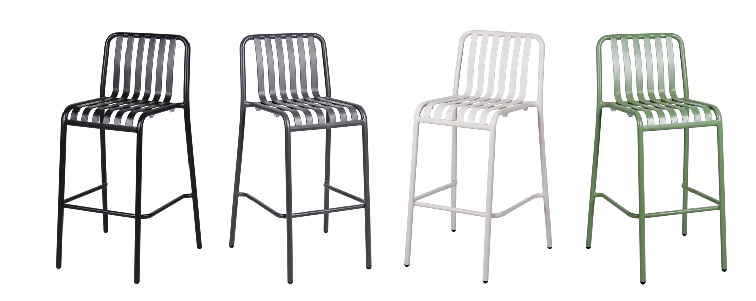 ntroducing the Bordeaux Aluminium Bar Stool, a harmonious blend of sturdiness and contemporary finesse. This bar stool features a durable powder-coated aluminium frame, which is accentuated by a sleek and polished finish, imparting a sense of modern sophistication. Its lightweight nature makes it easy to handle and reposition as needed. The Bordeaux Aluminium Bar Stool boasts a vertical slat design that adds an element of elegance to its structure, making it the perfect piece to enhance the ambiance of bars, restaurants, or outdoor lounges.
