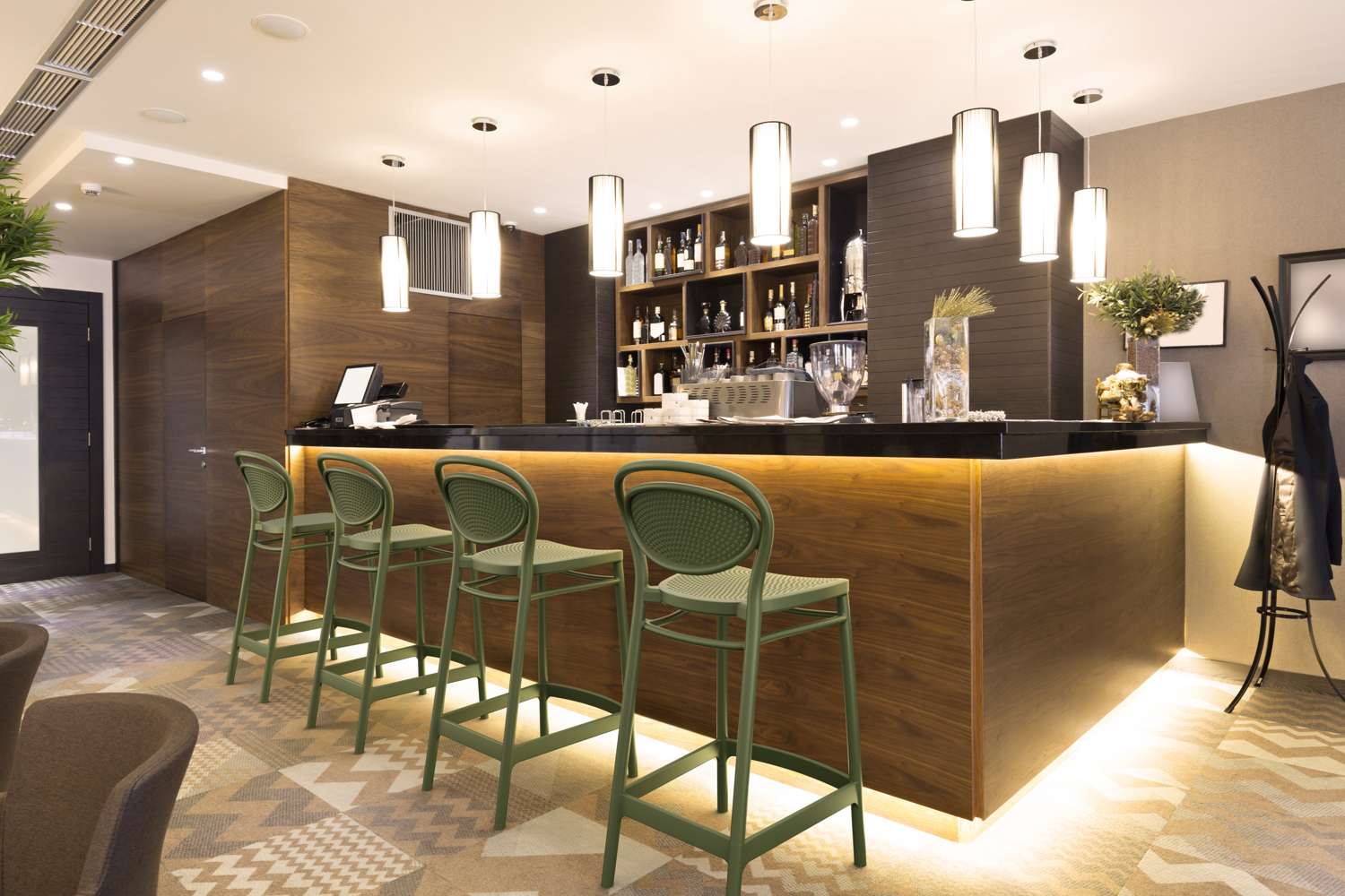 Marcel bar stool h.75 cm is produced with a single injection of polypropylene reinforced with glass fibre obtained by means of the latest generation of air moulding technology with neutral tones. For indoor and outdoor use.