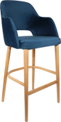 FL Sorbet Velvet Upholstered Timber Legs Hospitality Barstool - Denim / Trojan Oak is backordered and will ship as soon as it is back in stock.