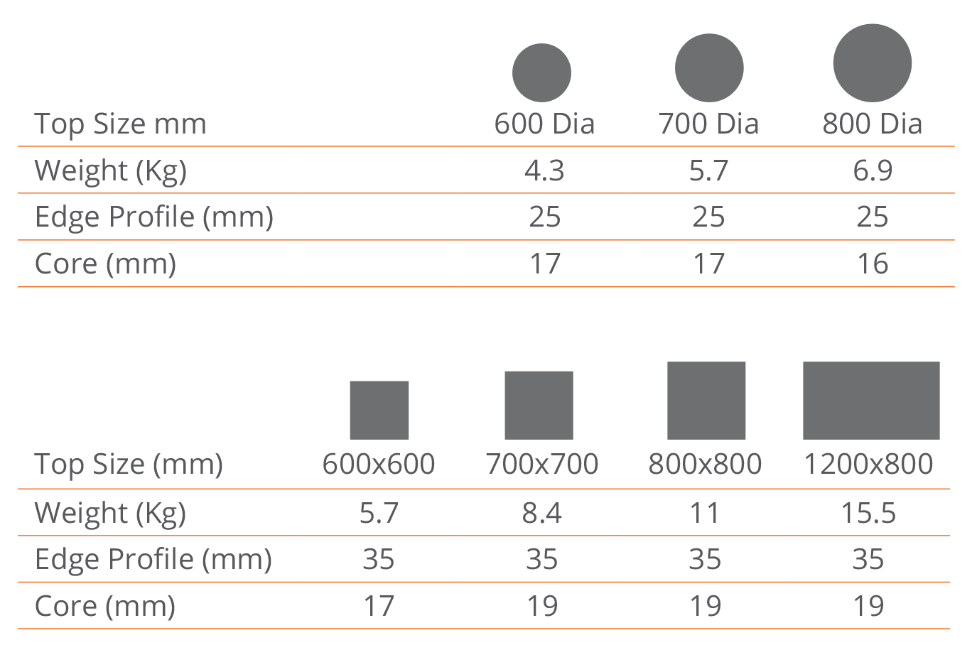 - 19mm core with a 35mm bevel edge profile