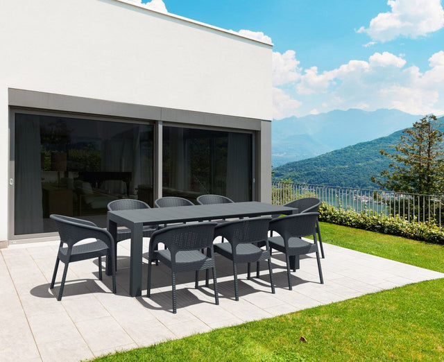 Crafted with precision in Europe, the Vegas Table takes centre stage, constructed from high-quality polypropylene reinforced with fibre glass. This ensures not only a chic aesthetic but also exceptional durability. The table is UV-resistant, preventing colour fade and damage, and with its extendable design from 1800 to 2000mm, it effortlessly adapts to your spatial needs. Weighing in at 36kg, the Vegas Table is a sturdy centrepiece that won't unravel or rust, backed by a reassuring 5-year warranty.