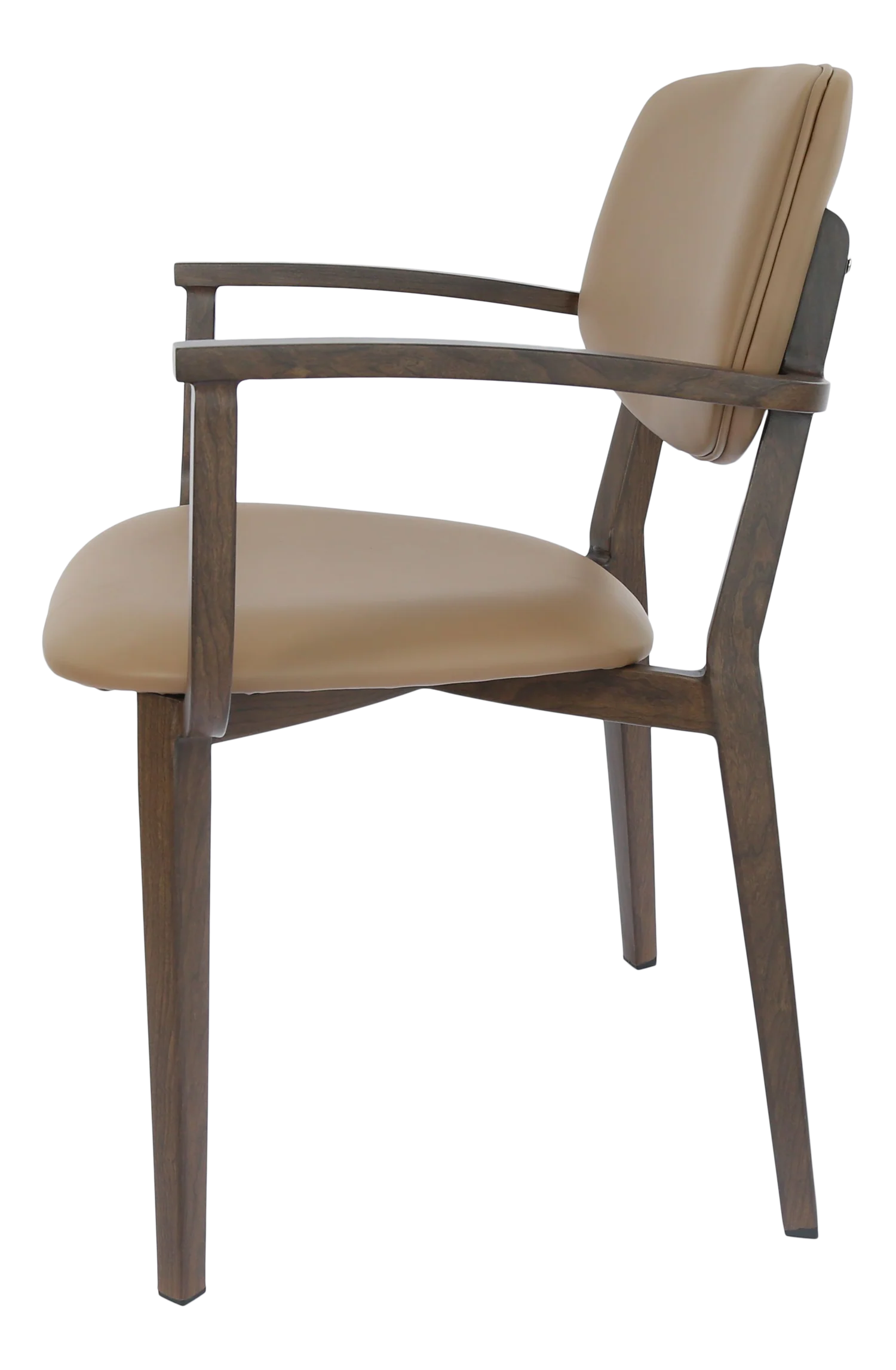 Designed with a sleek wood grain aluminium frame, this armchair offers a modern, professional look that fits seamlessly into a wide range of indoor commercial environments, from restaurants to hotels. The upholstered backrest adds a luxurious touch, providing your customers with the ultimate comfort while offering a polished, sophisticated aesthetic that will elevate any space.
