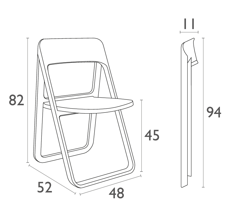 Dream folding chair is produced with a single injection of polypropylene reinforced with glass fibre obtained by means of the latest generation of air moulding technology with neutral tones. For indoor and outdoor use.