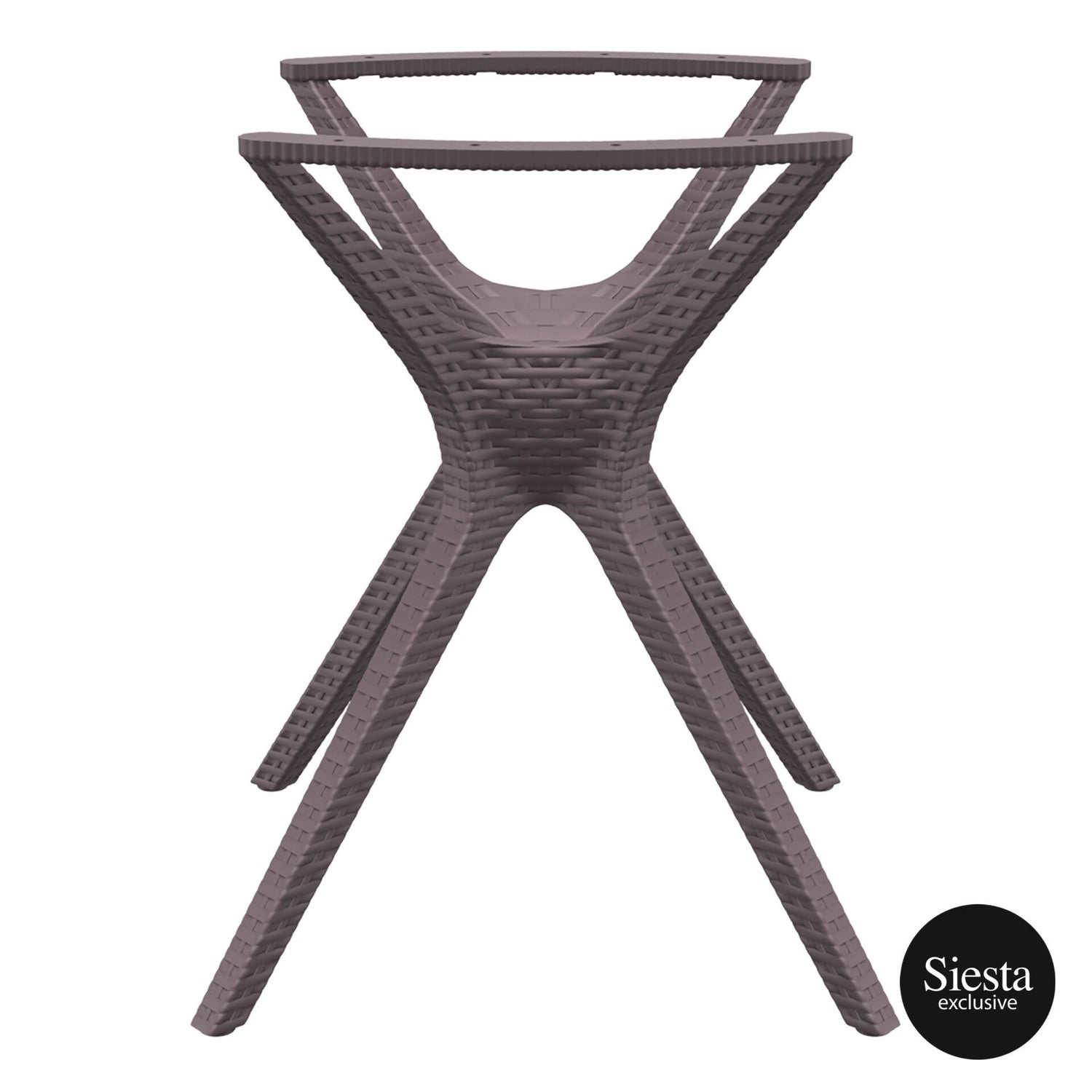 The Siesta Ibiza Legs Medium are produced by the latest generation of air moulding technology with a single injection of polypropylene. The Ibiza Legs are a matching product to the Resin Rattan Range. These legs are a classy and suitable option for any table top within the size range of 70cm x 120cm to 80cm x 160cm on the medium base; 70cm x 70cm to 90cm x 90cm on the small base & 90cm x 180cm to 100cm x 200cm on the large base. They are available in either Anthracite, Chocolate or White. They are UV stabilised making them a great option for both indoor and outdoor commercial environments. Can be disassembled. These table legs boast sturdiness and durability and come with a 5 year structural warranty.