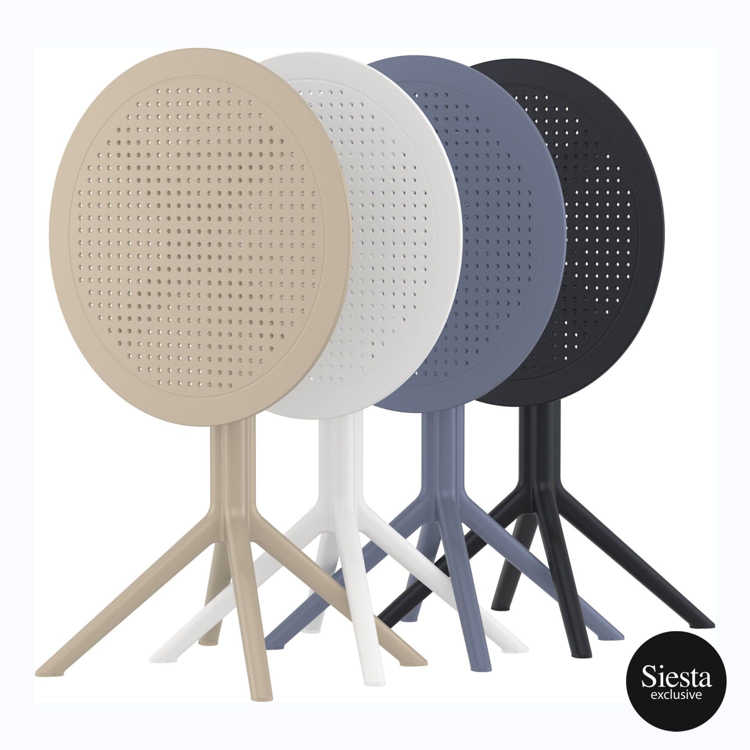Introducing the Sky Folding Table 60 Round, a versatile and durable solution for both indoor and outdoor settings.