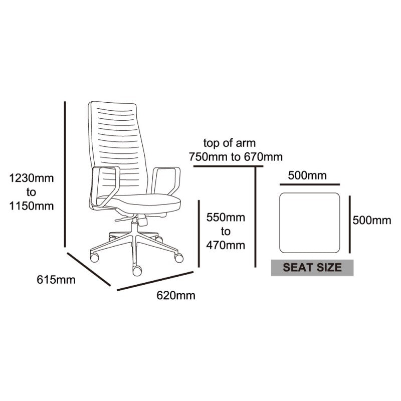 - High back Executive chair in Black quality 1mm PU