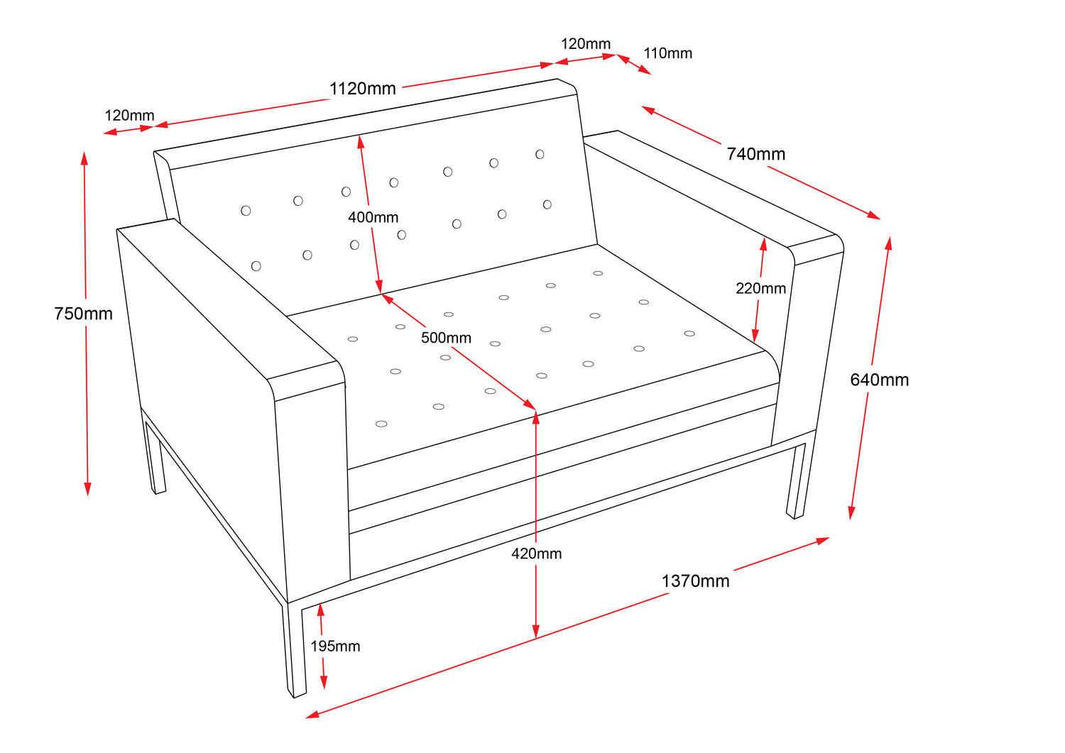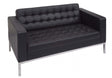 Elegant reception area two seater arm chair with button finish to black PU, easy clean upholstery. Stainless steel underframe and legs.
