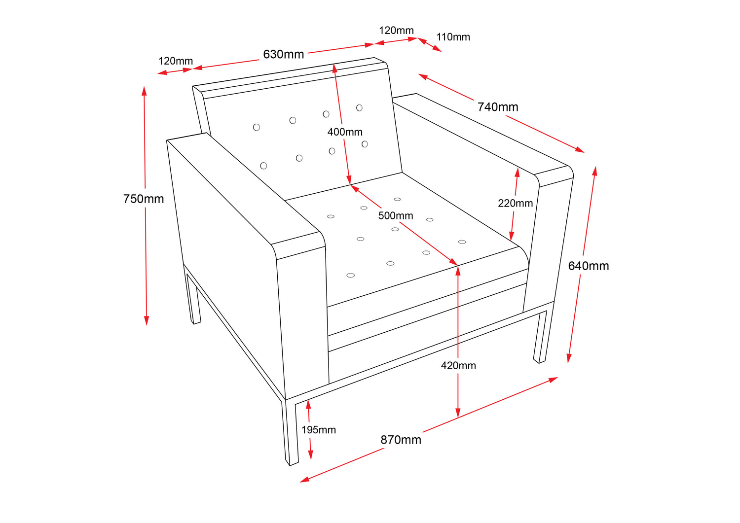 - Dimension: 400mm Back height x 500mm Seat Depth x 630mmSeat Width
