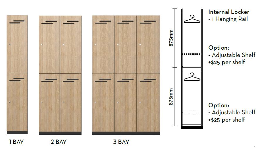 - Locker Depth 500mm; Overall Height 1800mm; Locker width 300mm; Kicker 50mm