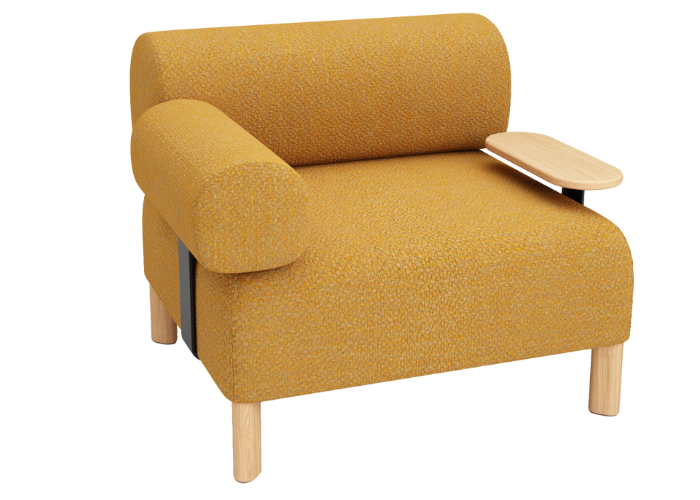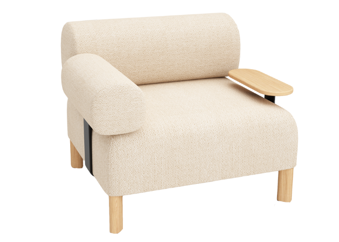 DD Cailloux Fabric Single Seater Breakout Sofa with 1 Armrest & 1 Side Table
