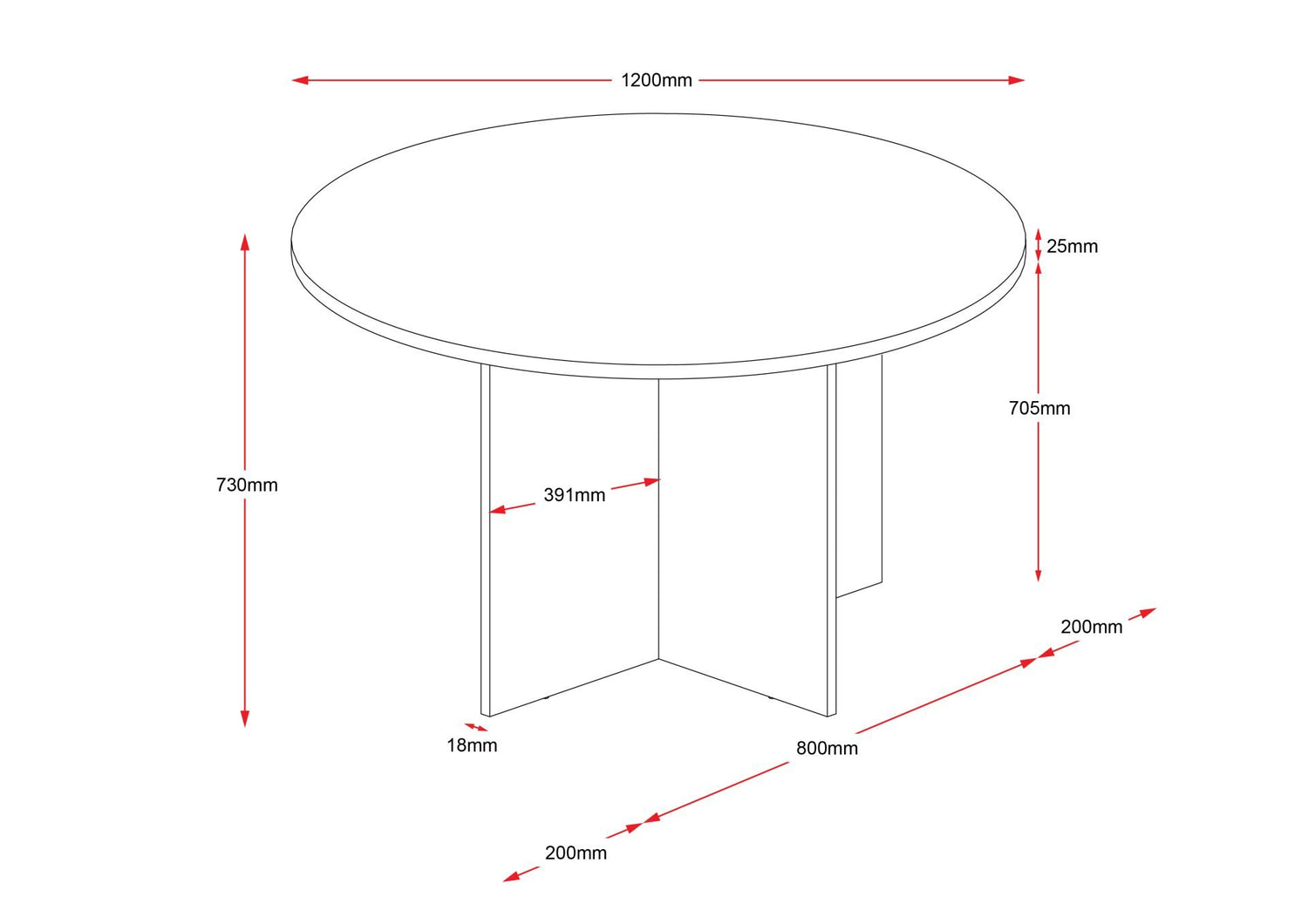 The Rapid Worker round table is a robust work horse with a 25mm top and sturdy ironstone cross base.