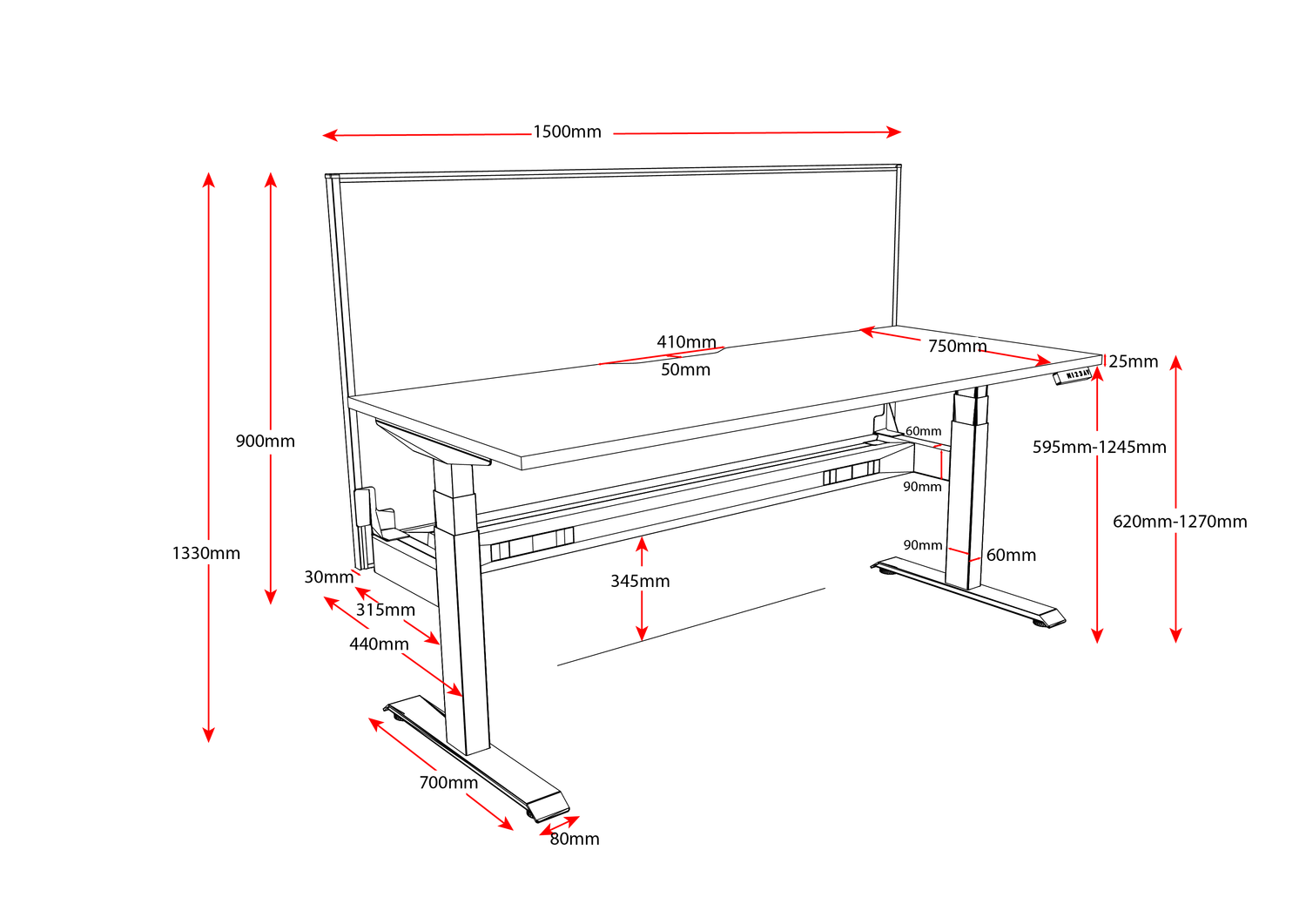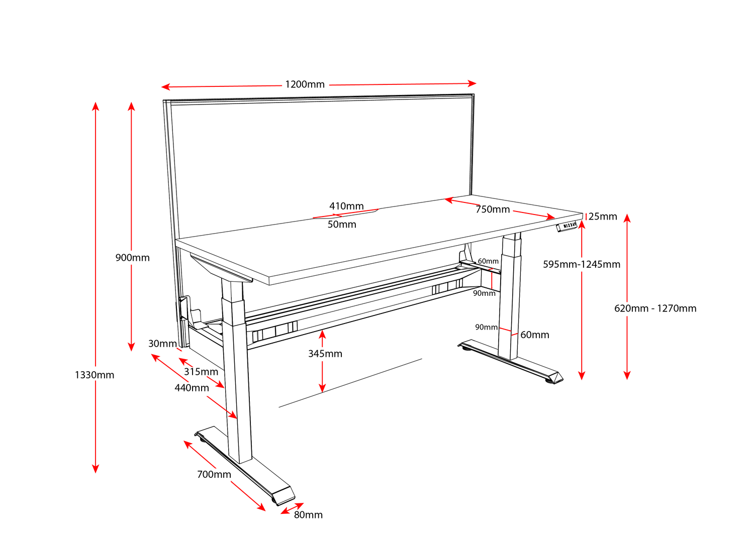 - Desk Height: 620mm – 1270mm