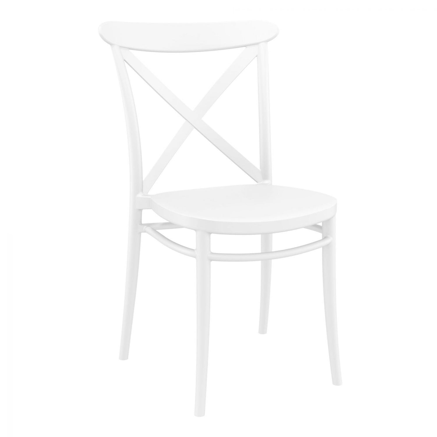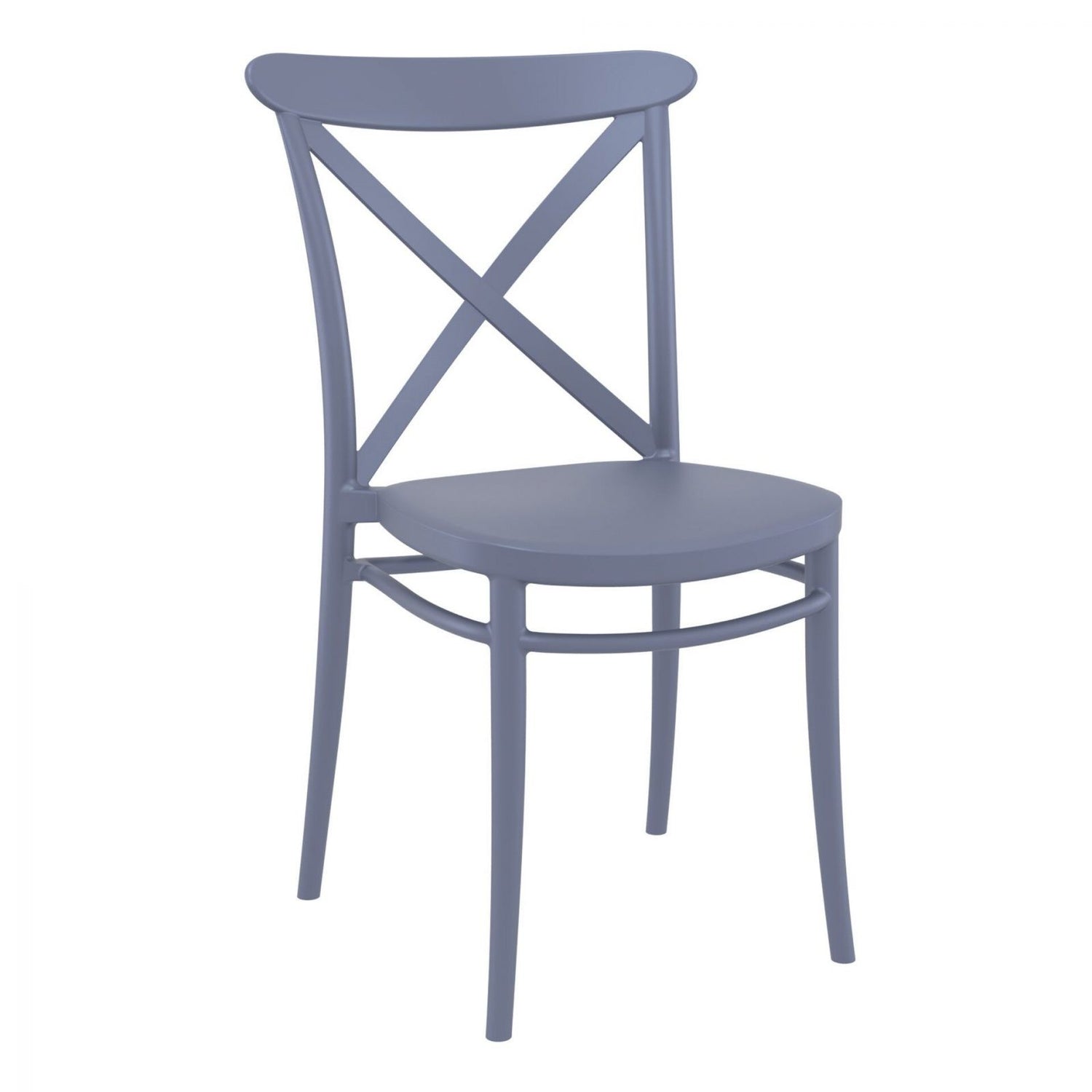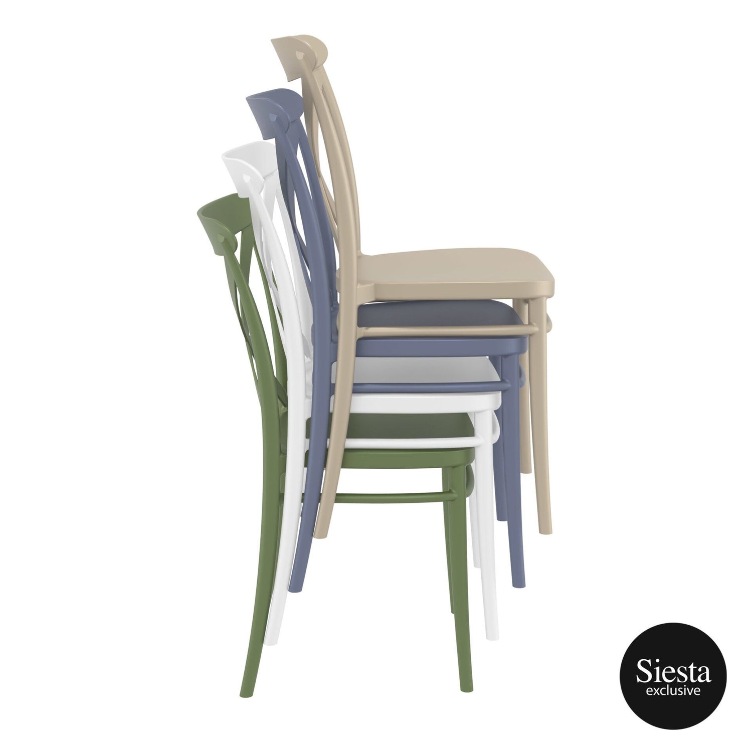 Cross stacking chair is produced with a single injection of polypropylene reinforced with glass fibre obtained by means of the latest generation of air moulding technology with neutral tones. For indoor and outdoor use.