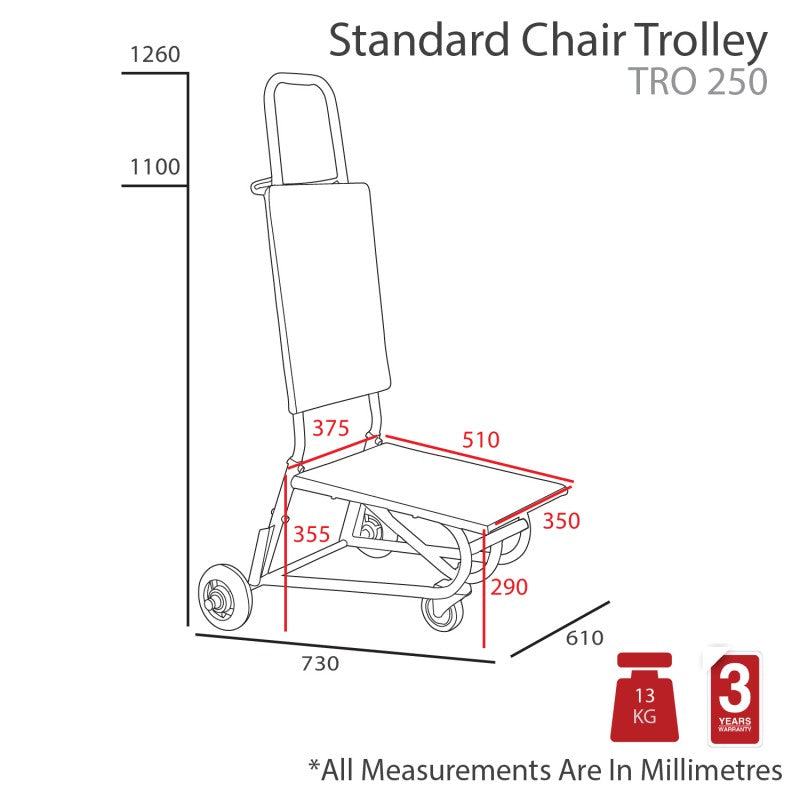 Efficiently transport and store your hospitality chairs with the MA Standard Hospitality 4 Leg Chair Trolley. With a sturdy 4-leg design, this trolley can hold multiple chairs at once. Perfect for event venues, hotels, and more, this trolley allows for easy setup and clean-up, saving you time and effort.