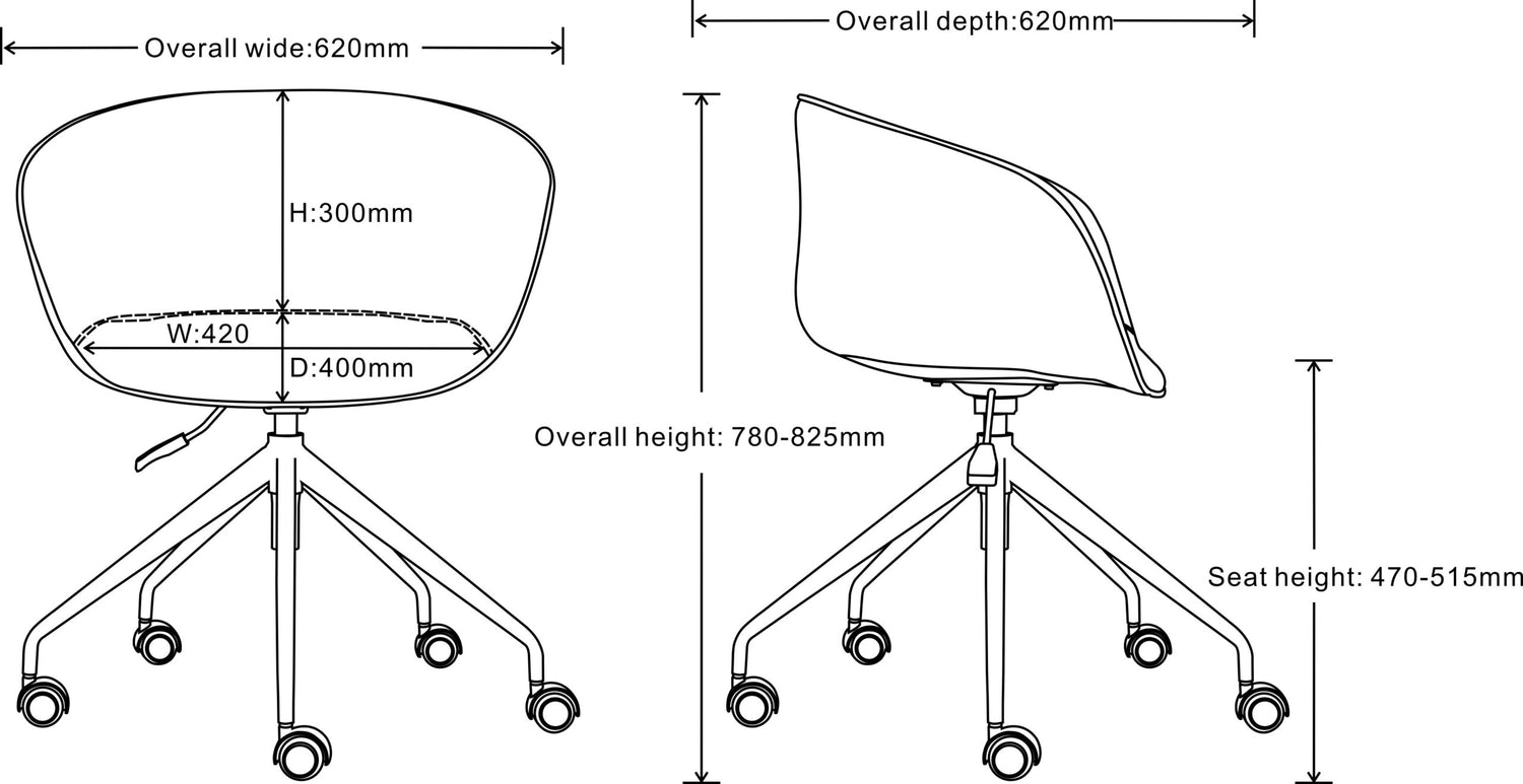 - Overall Dimension: 620W x 620D x 780-825H mm
