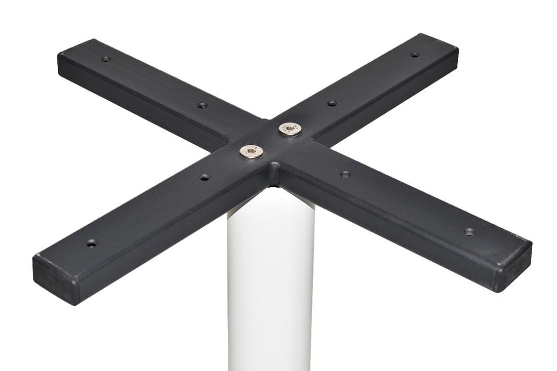 This is an off-white colour. Closest Dulux colour is Surfmist|Steel spider 400 x 400 x 20mm|Column D63mm|Adjustable foot glides to 6mm|Suggested top dimensions - up to D700mm