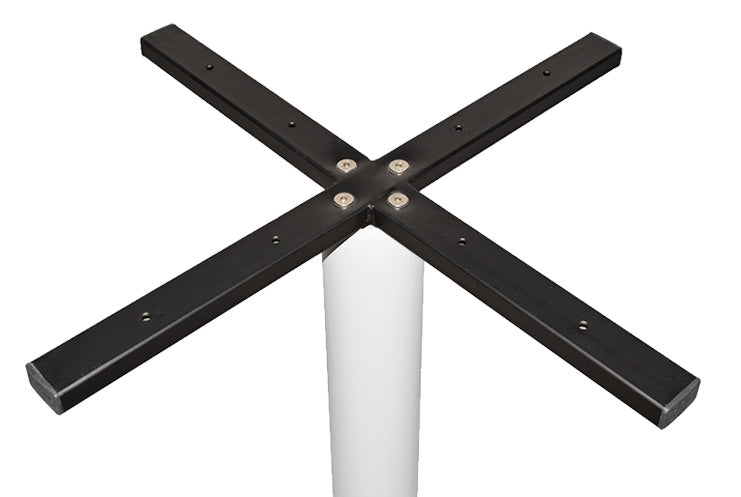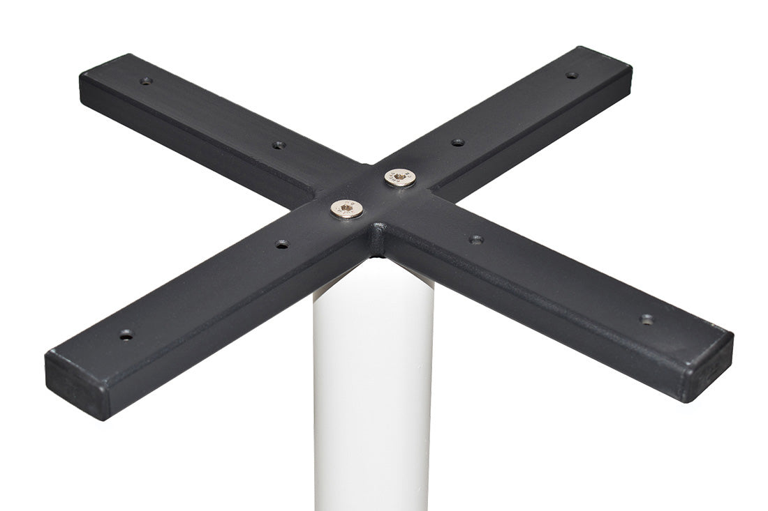 This is an off-white colour. Closest Dulux colour is Surfmist|Steel spider 500 x 500 x 20mm|Column D63mm|Adjustable foot glides to 6mm|Suggested top dimensions - up to SQ800mm