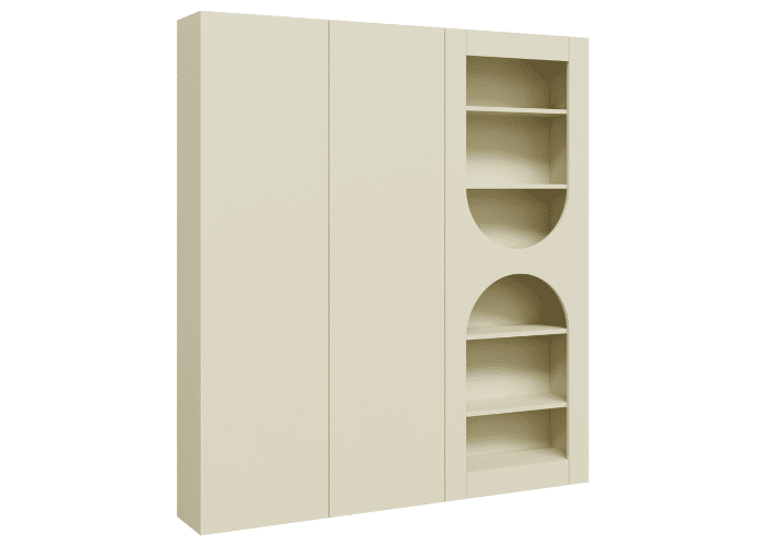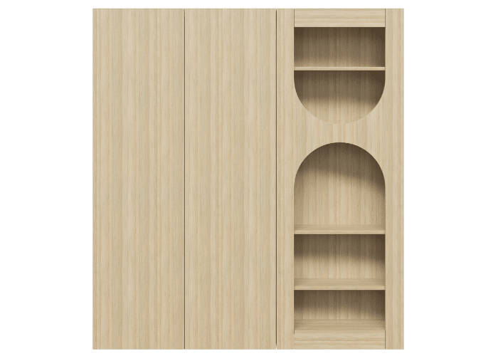 Asher represents the fusion of a vertical storage unit featuring two gracefully arched compartments and customizable shelving, making it an exquisite wall-mounted storage solution suitable for any room.