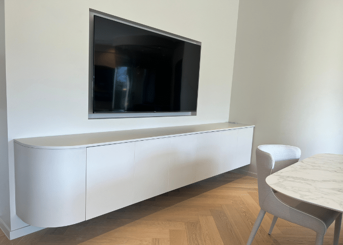 Our elegantly designed floating credenza embodies sophistication, perfect for enhancing the ambiance of a boardroom, office entrance, or reception area. It seamlessly combines functionality with aesthetic appeal.