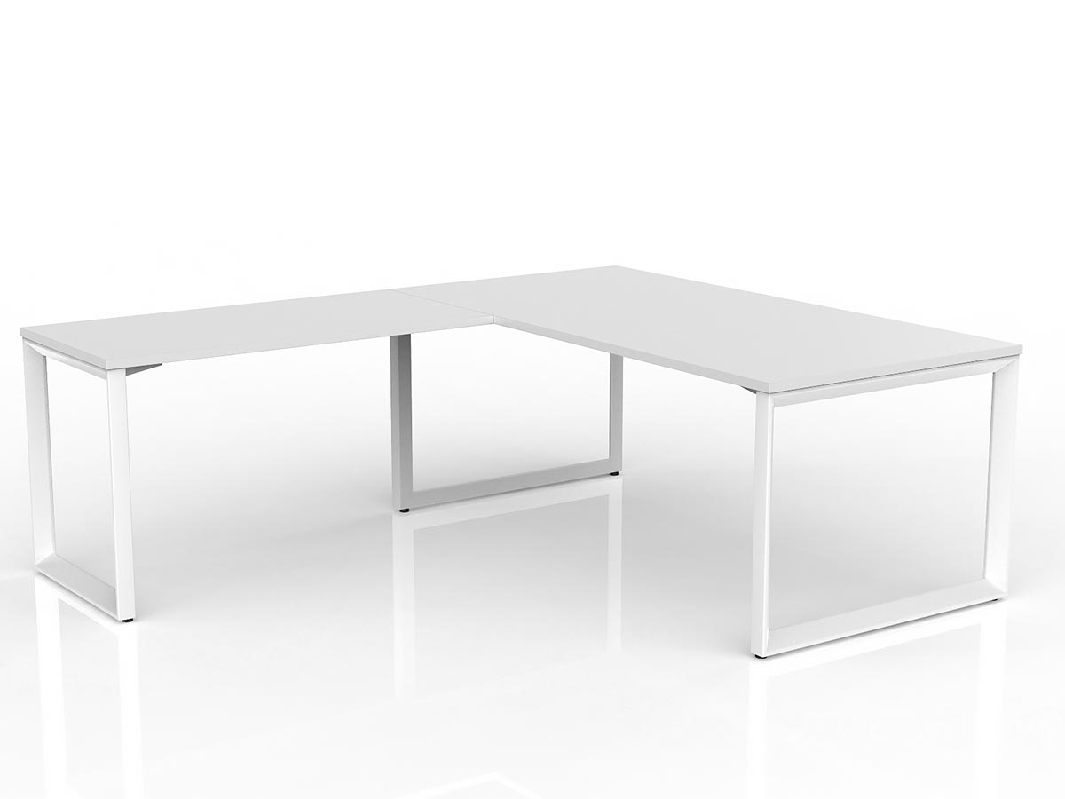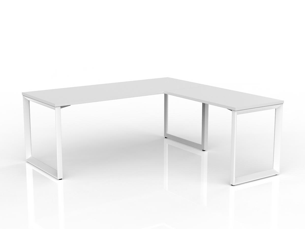 OL Anvil Melamine Top Metal Frame Office Desk with Return - 1800W x 600D / 1200W x 600D / Right Hand Return White Frame White Top is backordered and will ship as soon as it is back in stock.