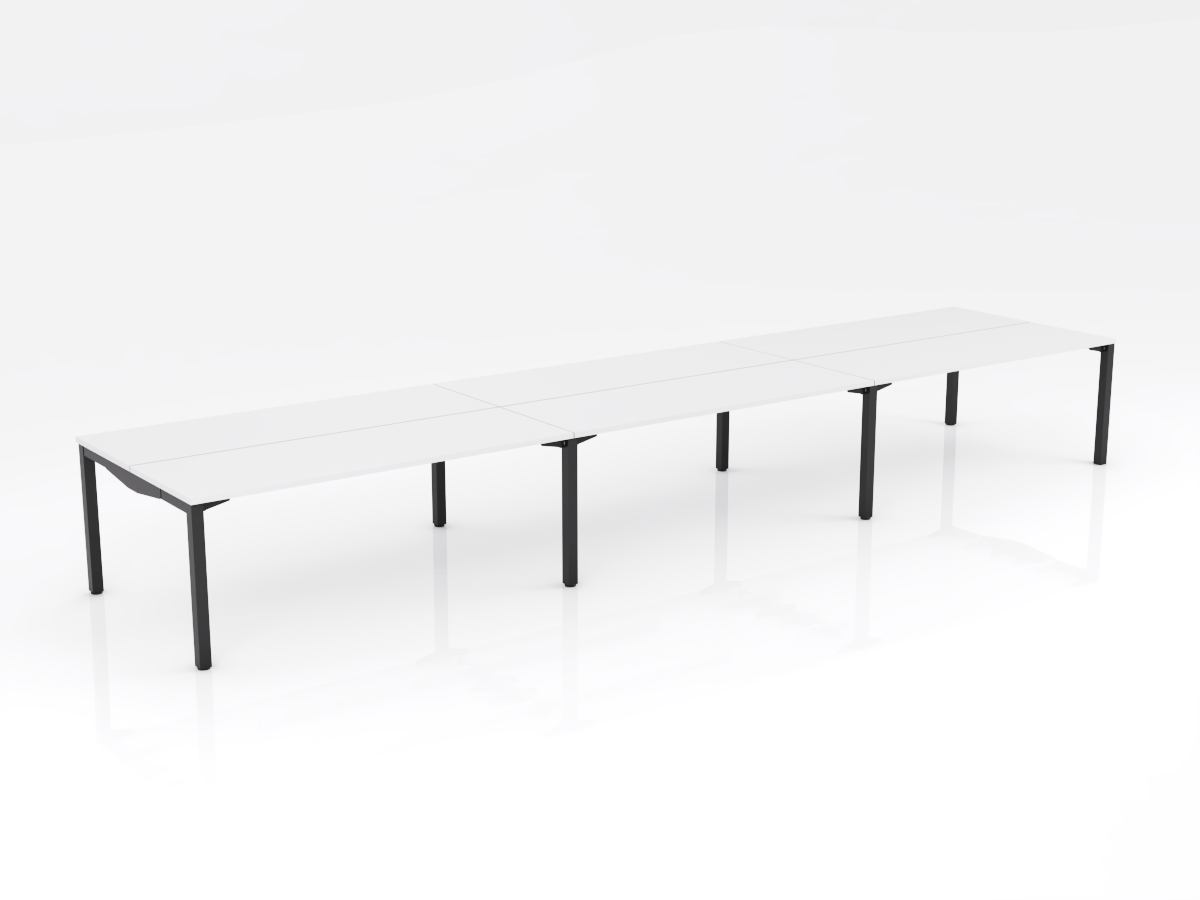 OL Axis Stretch 6 Person Double Sided Desk – White Top Black Frame