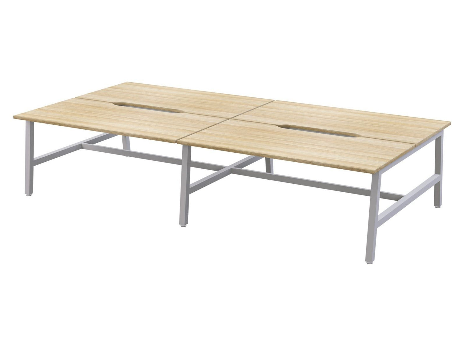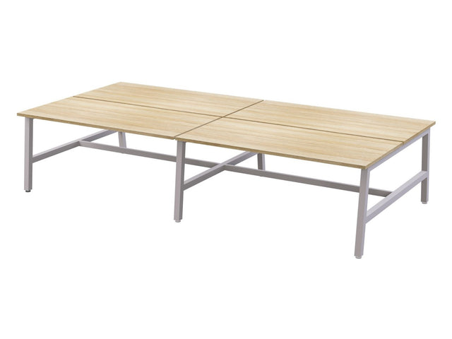 OL Axis Trestle 4 User Bench – Oak Top with White Frame