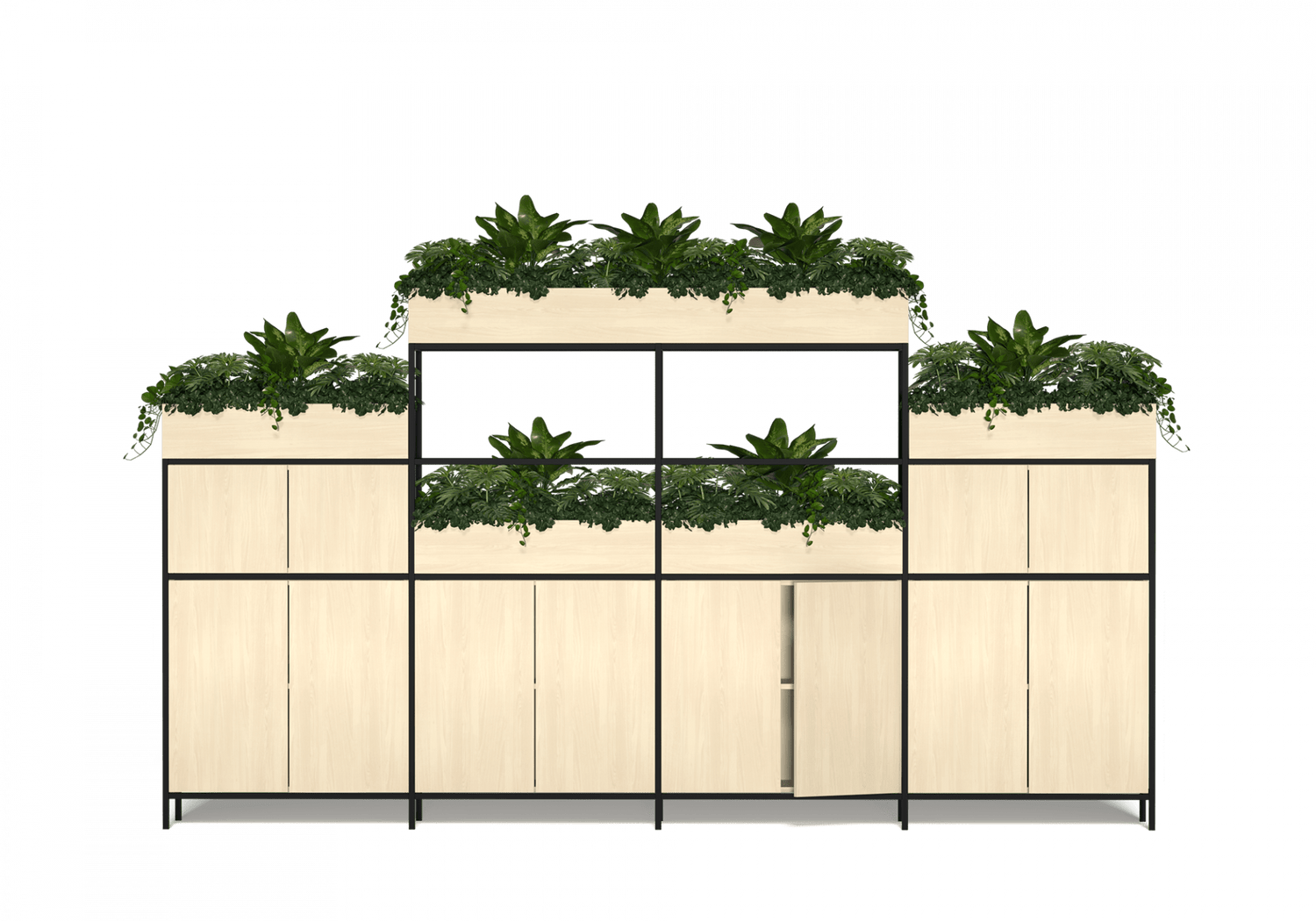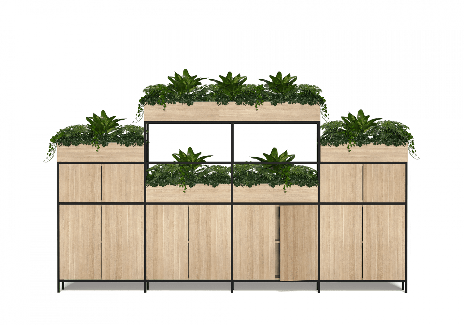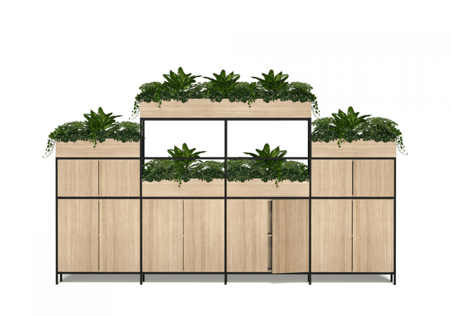 - 12 Hinged doors with 18 Planter boxes