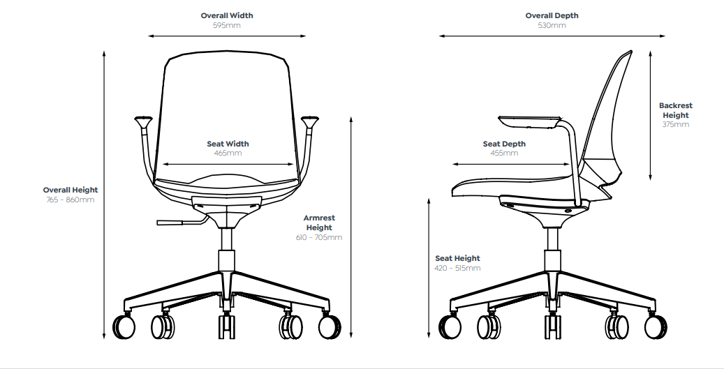 • Dimension (mm): 465W x 455D x 765 ~ 860H