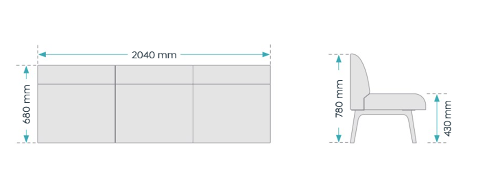 - Dimension (mm): 2 Seater - W1360 x D680 x H780; 3 Seater - W2040 x D680 x H780