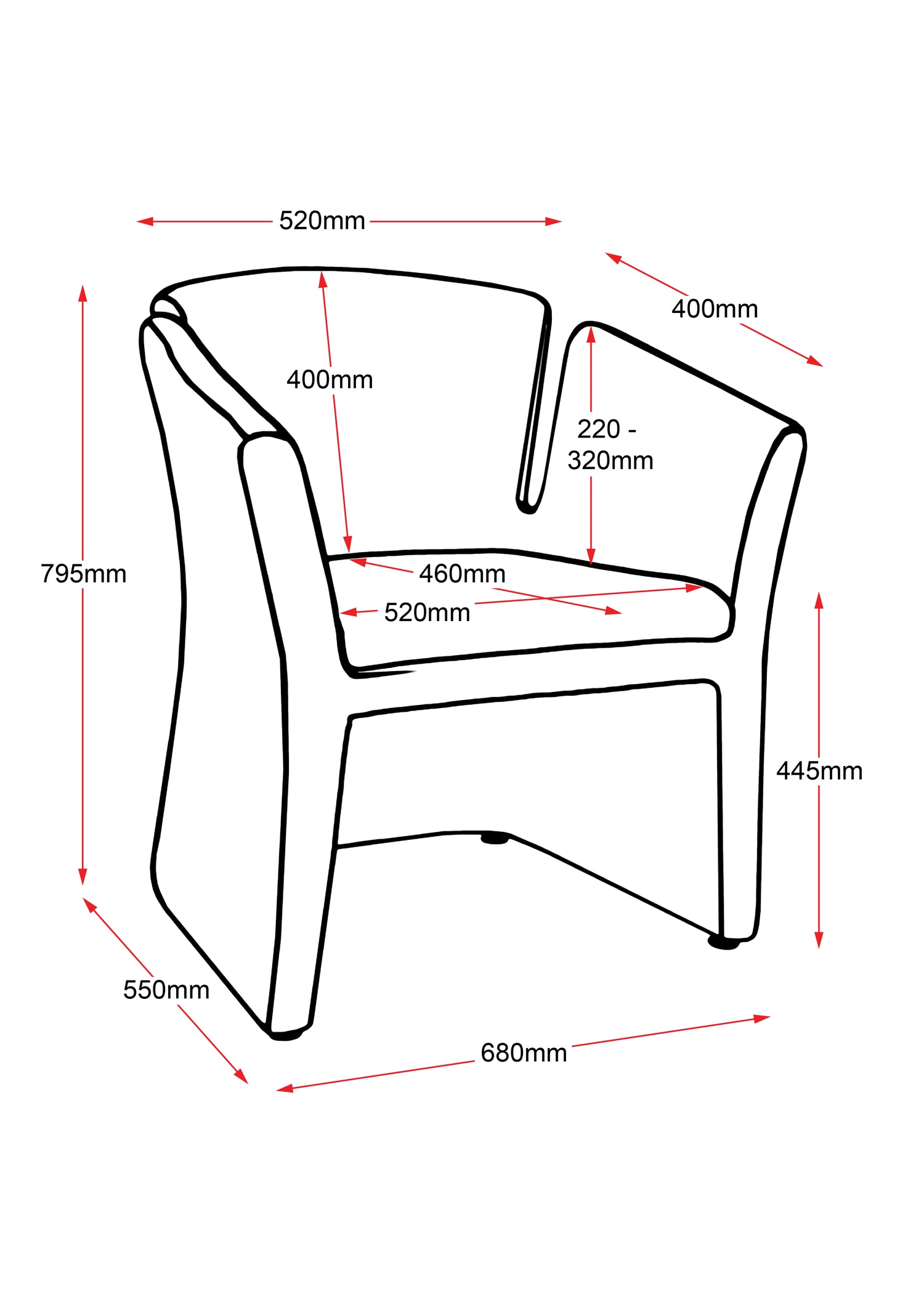 - Overall Size: W680 x D550 x H795 mm