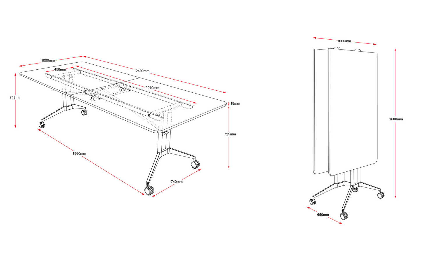- Stylish Rubber Strip Edging to Table Top with Quick Release Flip Mechanism