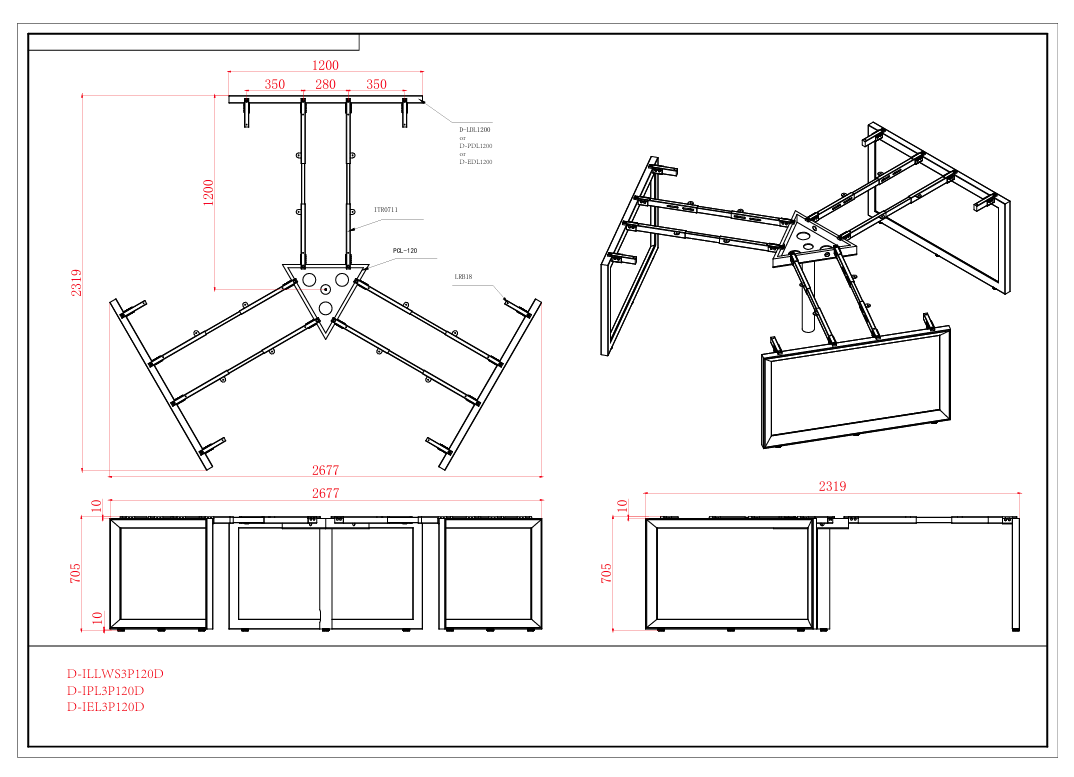 - Per User Dimension: 1205W x 1205D x 730H mm