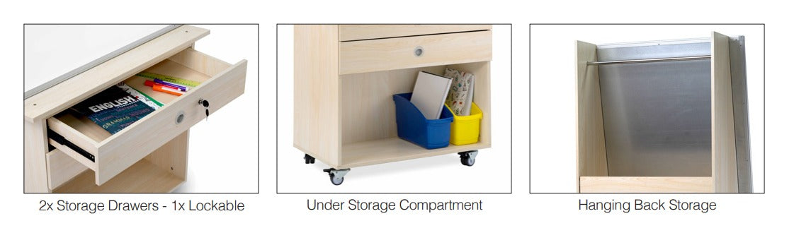 - Underneath, a handy storage space which perfectly fits our plastic Storage Tubs